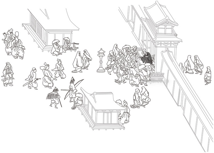 四天王寺西門は最近、一人の出家によって騒がしい。西門で説教をし、自らは数珠を振り回しながら、皆で念仏を称えることを朝から晩まで行っているのです。