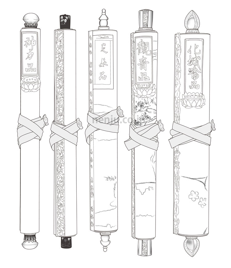 使いの者は、巻紙を広げると、経巻の構想を記した図絵を娘に示した。『法華経』三十巻『阿弥陀経』一巻『般若心経』一巻、平清盛の『願文』一巻の合わせて三十三巻。平家一門が厳島神社に納経したことから『平家納経』と呼ばれる正厳の極みを尽くした経巻。その軸首の大半が宝塔、六角甲高など水精によるものです。