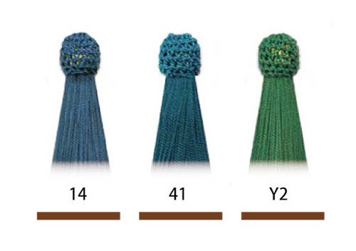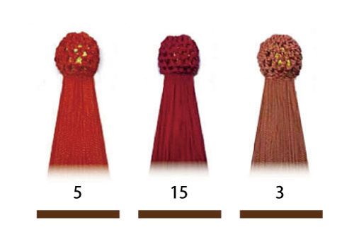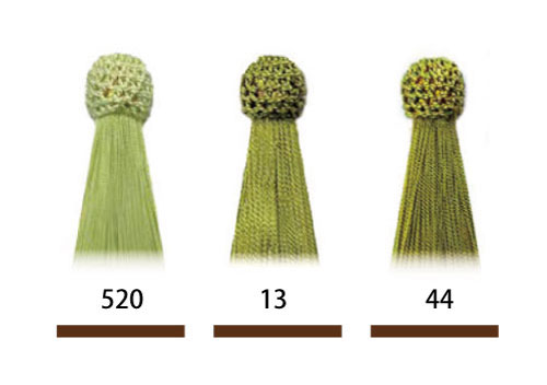 弥勒房®は「撚り房」に独自の工夫を加え、上品でスマートさを併せ持つ洗練された房へと改良を重ね開発された房です。使用されている糸は特上の極細正絹で、山田念珠堂ならではの技術で品質の高い張りのある縒りを掛けています。従来の正絹房に比べると、より柔和で繊細な感触を実現しており大変好評を頂いております。房色は現在37色を揃えています。