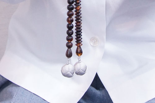 釈迦凡天房は「伝統的な梵天房」に地道な改良を重ね、山田念珠堂が開発したものです。日本で初めて30年以上も前に小田巻(おだまき)を念珠に採用した製品となります。丈夫で型崩れしにくく機能性に優れていることから、現在では広く知られた房となり、他社でも同様の念珠房を取り扱っておられます。