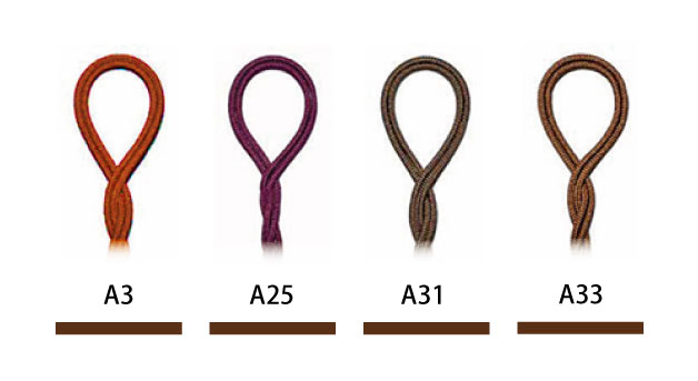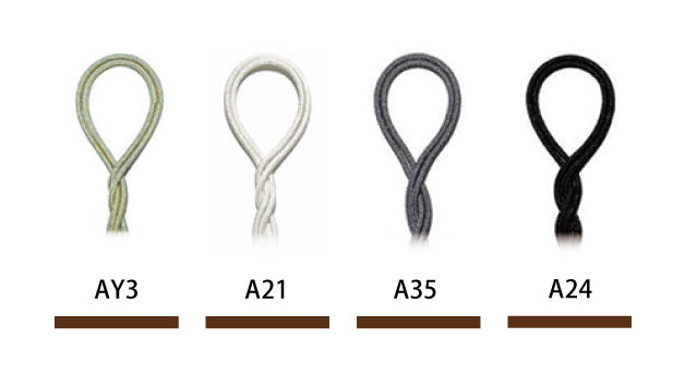 打紐と言われる機械打ちされた「紐」で籠編みされた房部が特徴的な紐房。山田念珠堂では阿弥陀房®の房名となっております。従来では同じ打ち紐で念珠の中通しも行っていましたが、山田念珠堂中通し紐糸(ウーリーナイロン)の特性を活かし、中通し糸と房を分けて仕立てているために、型崩れしにくい仕立てとなっています。