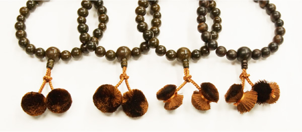 数珠と言うと、どんな玉の素材なのか、ということがまず気になる方が多いと思いますが、数珠にとって房はとても大切なものです。数珠玉の中を通る紐が親珠の中を通り、房へと繋がります。数珠の玉は菩薩修行の階梯のシンボルとされ、親珠を通り結ばれ撚られる房となることで、数珠は仏の法具となり、持つ方の幸せを導きます。