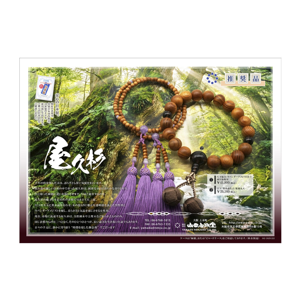 千年の時を刻んだ木は、語らずとも深い気配をまといます。屋久島の厳しい自然の中で育った屋久杉は、緻密な木目と清らかな香りを持ち、手に取った瞬間に違いを感じさせます。今回ご紹介するのは、屋久杉の魅力をそれぞれの表情で引き立てた二連。22玉の大玉に茶水晶を合わせ、木の温もりに端正な透明感を添えた男性用とラベンダーアメジストを配し、柔らかさと気品を感じさせる女性用。現在、市場に流通する屋久杉は、自然倒木や土埋木など限られたもののみ。同じ表情のものは二つとなく、そのひとつひとつが、長い歳月を生き抜いた証でもあります。日々の手元に、静かに寄り添う “時間を宿した御念珠” でございます。